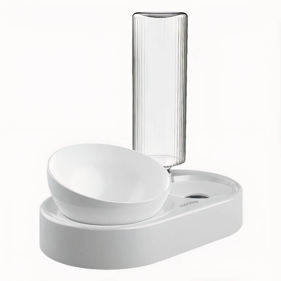 Votre matou aura tout ce qu’il lui faut avec ce bol chat incliné avec support surélevé et distributeur d’eau. Doté d’une base antidérapante, il lui assurera un repas tranquille et confortable.