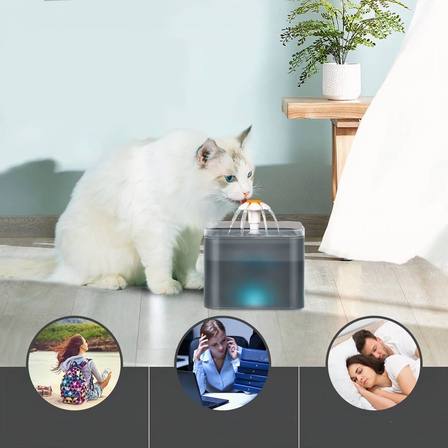Grâce à cette fontaine à eau automatique pour chat avec lumière LED, votre petit félin n’aura plus à vous perturber lorsqu’il souhaite boire de l’eau. Vous pourrez vous occuper à vos tâches tranquillement.