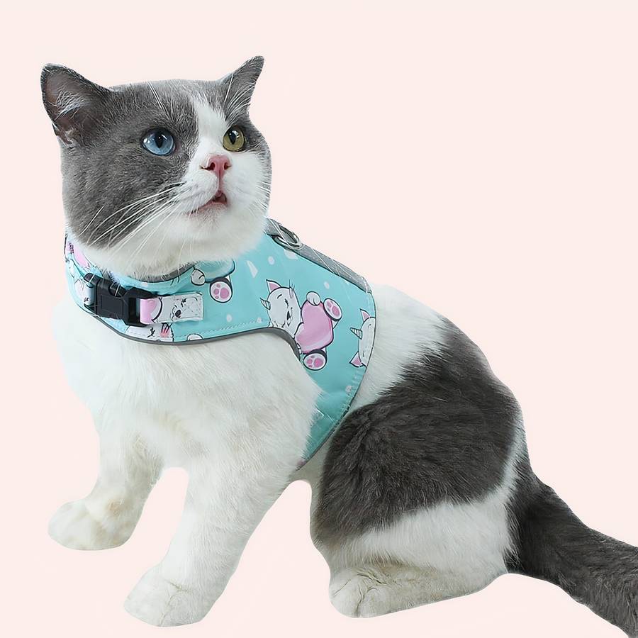 Ce harnais chat réglable à motif dessin animé est facile à mettre grâce aux sangles sur le bas côté. Fait en matière douce et respirante, il sera en outre agréable à porter pour votre animal de compagnie.