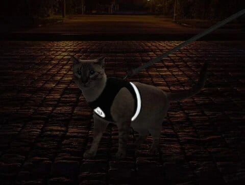 Si votre chat n’a pas l’habitude de porter de harnais, allez y progressivement et ne le forcer pas à le garder longtemps s’il n’est pas à l’aise. Dans ce cas, vous pouvez l’habituer doucement en plaçant le harnais près de sa gamelle ou de son lit pendant quelques jours et lui donner une friandise dès qu’il a enfilé le harnais pour qu’il l’associe à quelques chose de positif.