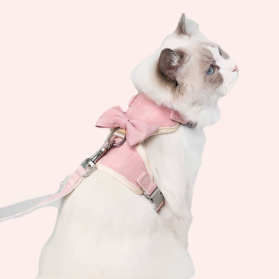 Ce harnais et laisse avec noeud pour chat ne gênera pas votre animal de compagnie. Doux et réglable, il est confortable et pratique à porter. Il passera de promenades agréables avec ce mignon harnais.