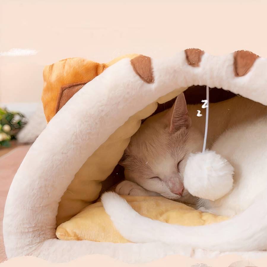 Ce coussin en forme animal pour chat est fait de tissu doux, chaud et épais. Il réchaufera efficacement votre petit félin en hiver. Il va aimer se faufiler dedans pour se mettre à l’abri du froid.