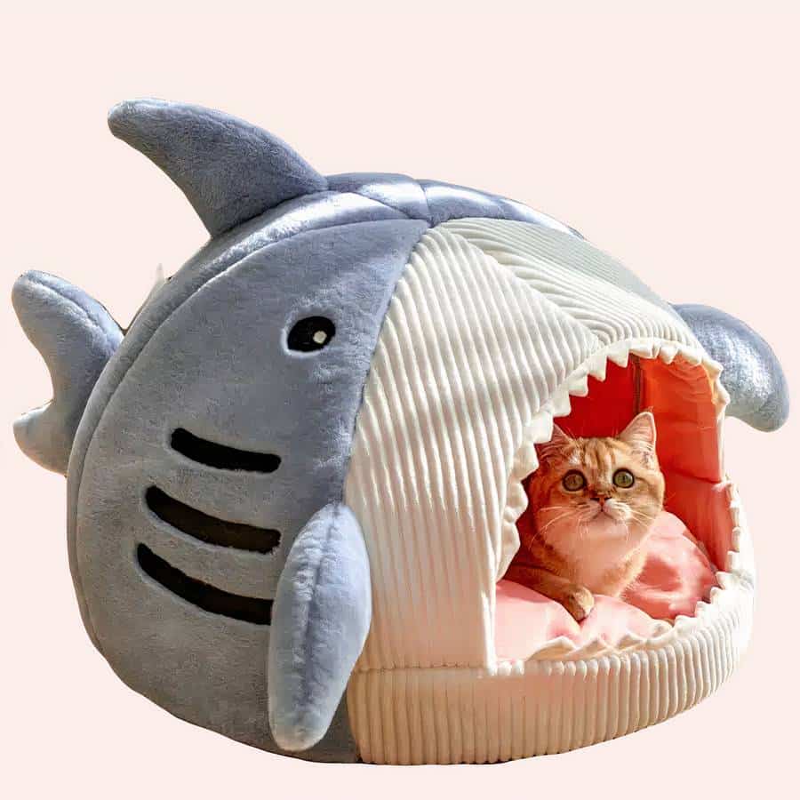 Votre petit matou adorera se pelotonner contre les flancs du requin symbolique de sa nature féroce et redoutable tout en appréciant la chaleur que procure le tissu douillet et confortable.