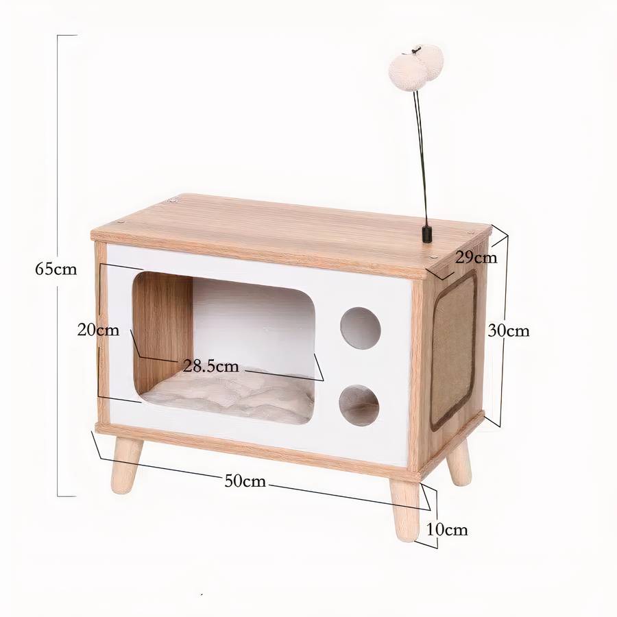 Cette maison chat en forme de TV sera magnifique dans votre chambre à coucher ou votre salon. En plus d’abriter votre petit félin, elle fera aussi office de décoration pour la pièce.