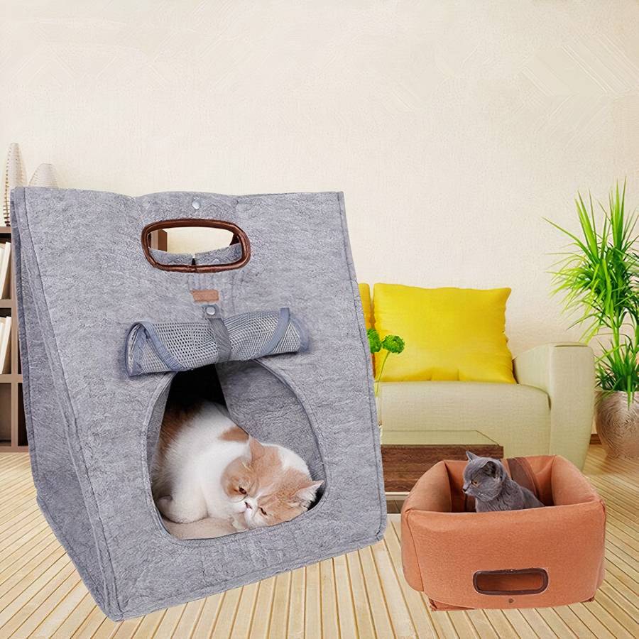 Cette niche chat en forme de sac à main peut facilement se transformer en un sac de transport pour chat. Mais en le pliant, vous pouvez aussi en faire un panier confortable pour votre matou.