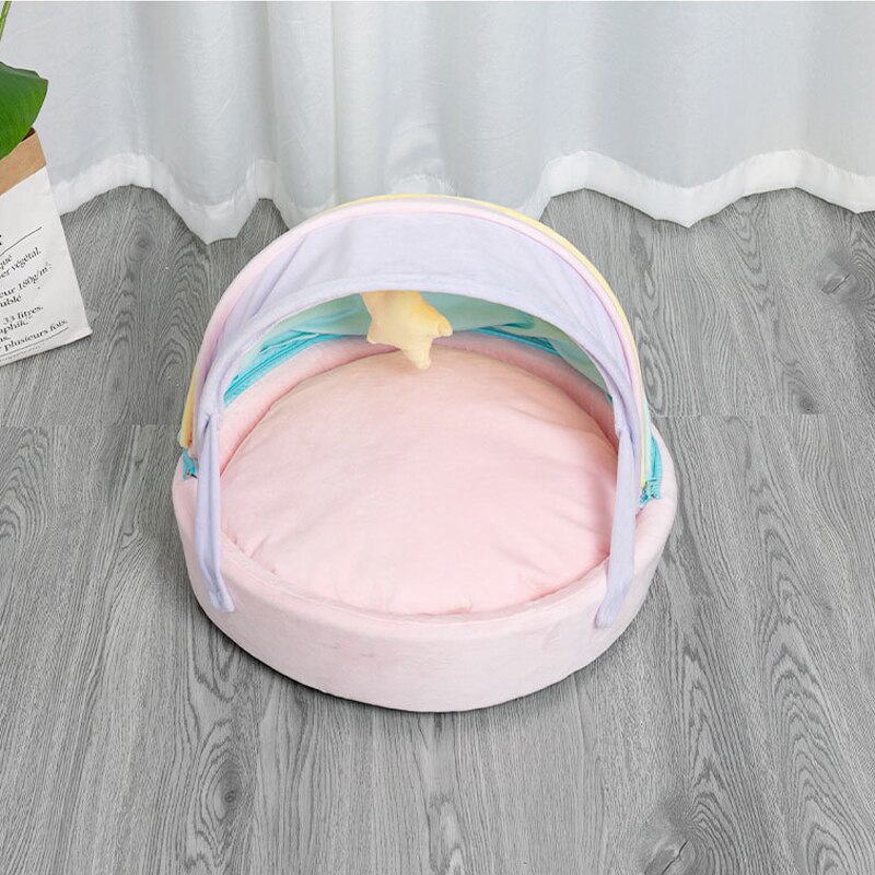 Votre petit félin passera de bons moments dans ce panier multicolore semi-fermé avec étoile pour chat. Non seulement il est super doux, mais il possède également un couvercle qui permet de le protéger du froid ou du soleil si vous placez à l’extérieur.