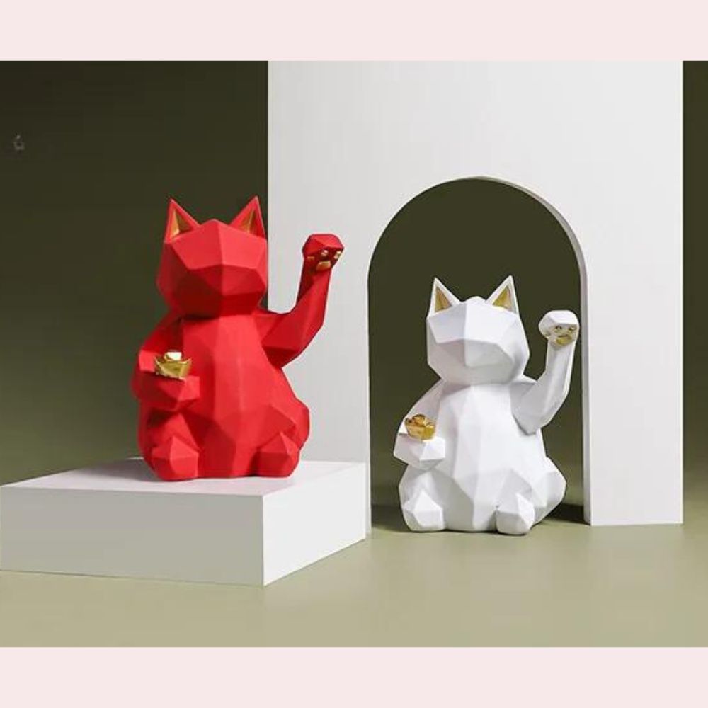 Ce chat porte-bonheur a été réimaginé avec un design innovant alliant tradition et modernité : ses lignes épurées et sa surface composée de triangles et de polygones évoquent l’art délicat de l’origami, offrant ainsi une touche d ‘élégance géométrique. Fabriquée en résine durable, cette figurine est non seulement robuste mais aussi une véritable Å“uvre d’art minimaliste qui embellira votre intérieur.