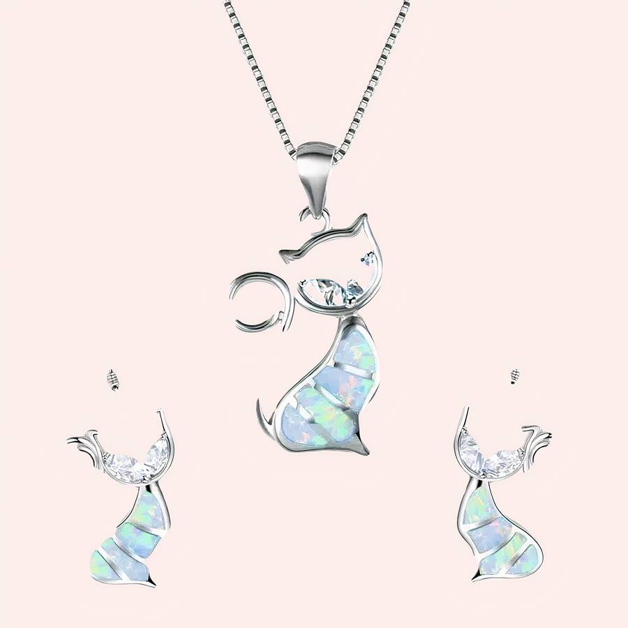 Voici l’accessoire parfait pour tout amateur de chats – l’ensemble collier et boucles d’oreilles Chat blanc ! Ce magnifique ensemble est fabriqué en métal blanc scintillant et comprend un délicat pendentif chat et des boucles d’oreilles assorties.