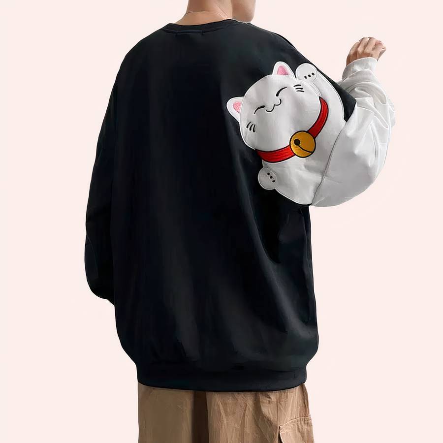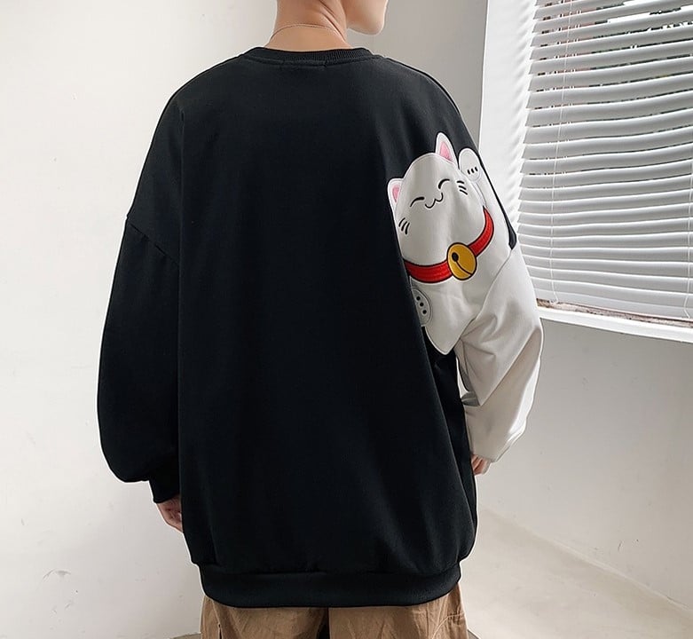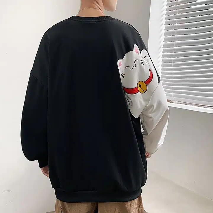 Le pull large noir avec motif de chat blanc dessin animé est un vêtement tendance et original qui apportera une touche de fantaisie à votre garde-robe. Confectionné dans un tissu doux et confortable, ce pull est idéal pour les journées fraîches d’automne ou d’hiver. Le design du pull est absolument adorable, avec un motif de chat blanc dessiné dans un style cartoon sur le devant.
