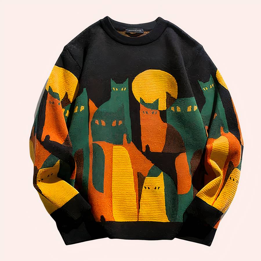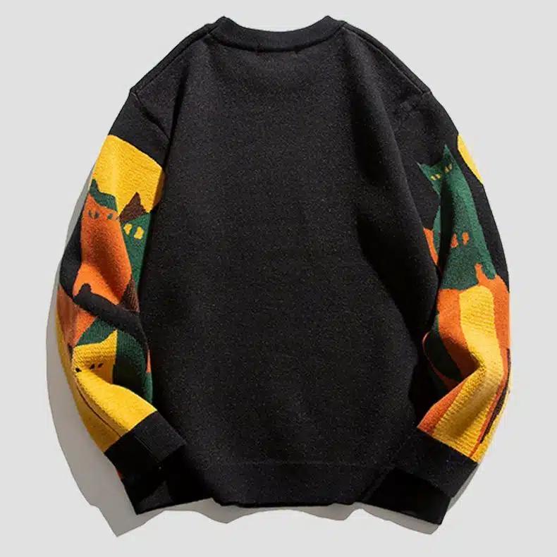 Le pull en tricot côtelé noir avec motif de chats pour hommes et femmes est un vêtement à la fois confortable et tendance. Confectionné dans une matière douce et chaude, il est idéal pour affronter les journées fraîches de l’automne et de l’hiver. Le tricot côtelé offre une texture agréable au toucher et une grande élasticité, ce qui permet au pull de s’adapter parfaitement à toutes les morphologies. La couleur noire, intemporelle et élégante, convient à tous les styles vestimentaires et se marie facilement avec d’autres couleurs. Le motif de chats imprimé sur le devant du pull apporte une touche ludique et originale à l’ensemble.