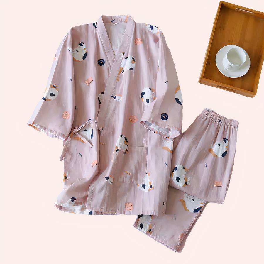 Ce pyjama kimono pour femme est une pièce unique et mignonne qui vous apportera un confort optimal. Il est conçu dans un tissu doux et léger. La coupe ample et décontractée du kimono le rend facile à porter et à enlever.