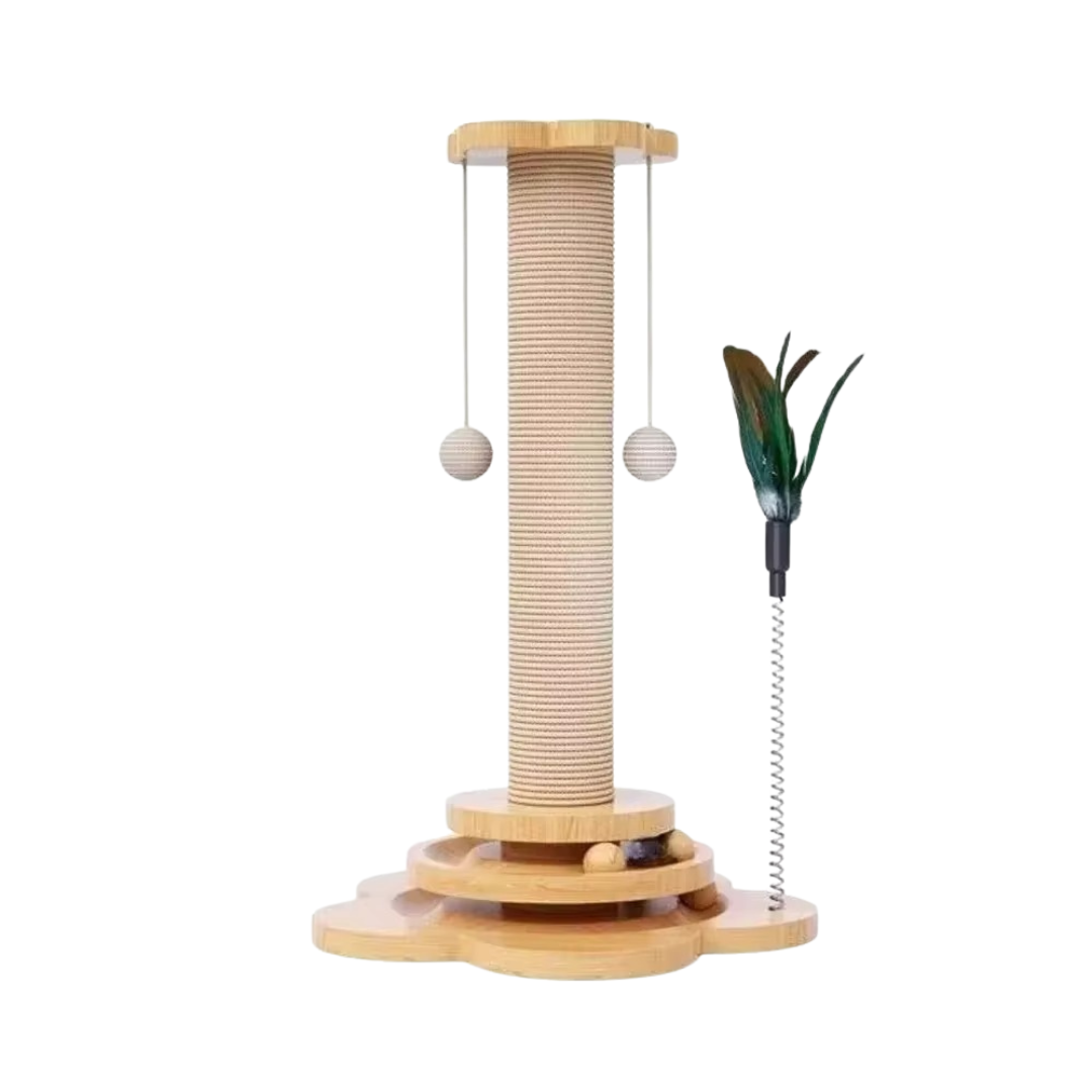 Transformez les journées de votre chat avec cet arbre à chat en bois, équipé de multiples jeux ! Avec sa plume dansante, son tunnel de billes en bois et son griffoir intégré, cet arbre offre un terrain de jeux naturel et interactif.