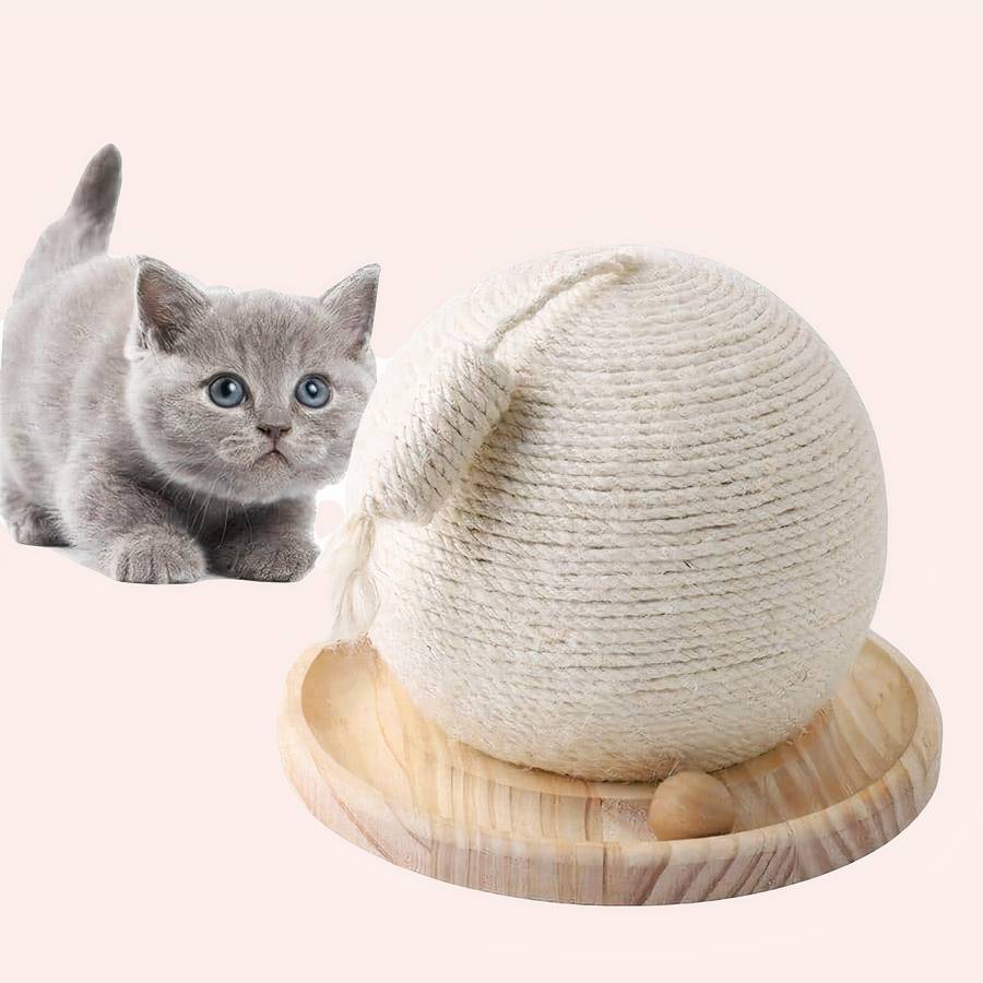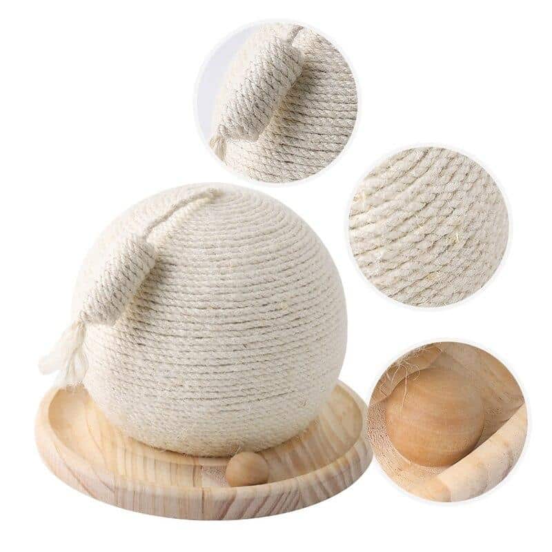 Avec son support très large en bois, cette boule de cactus tissé en sisal pour chat saura se fixer solidement sur le sol. Votre animal de compagnie ne pourra pas la déplacer.
