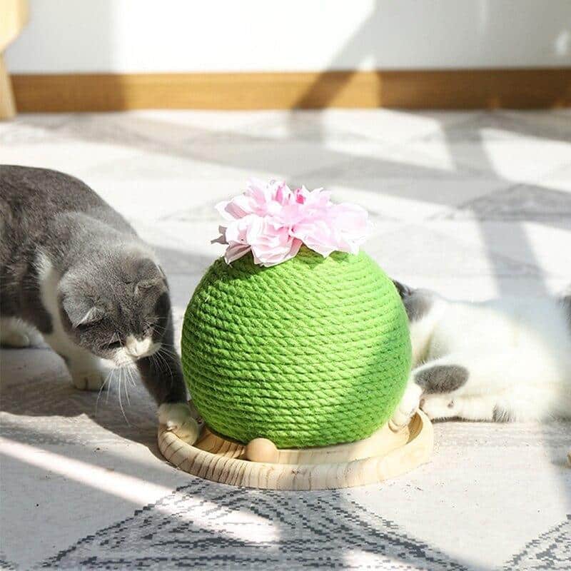 Cette boule de cactus tissé en sisal pour chat attirera à coup sûr l’attention de votre petit félin. Il va adorer s’amuser à attraper la petite balle collée son support en bois. Mais surtout, votre chat va aimer faire ses griffes sur cette balle en sisal.