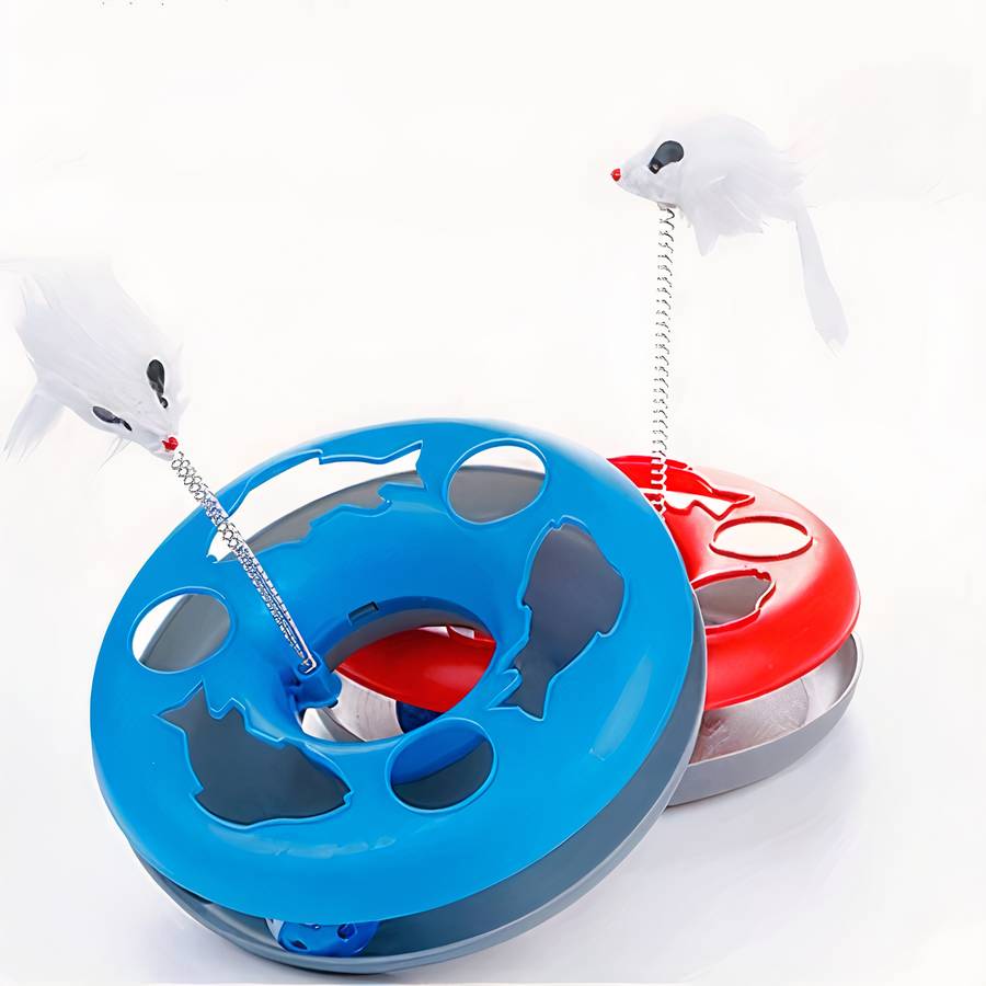 Ce disque de jeu multifonction pour chat, c’est un jeu sans fin pour que vous soyez tranquille pendant ce temps là. Votre chat va avoir du mal à comprendre pourquoi la balle tourne, mais elle reste dans son logement. Et du coup la souris s’ agite partout.