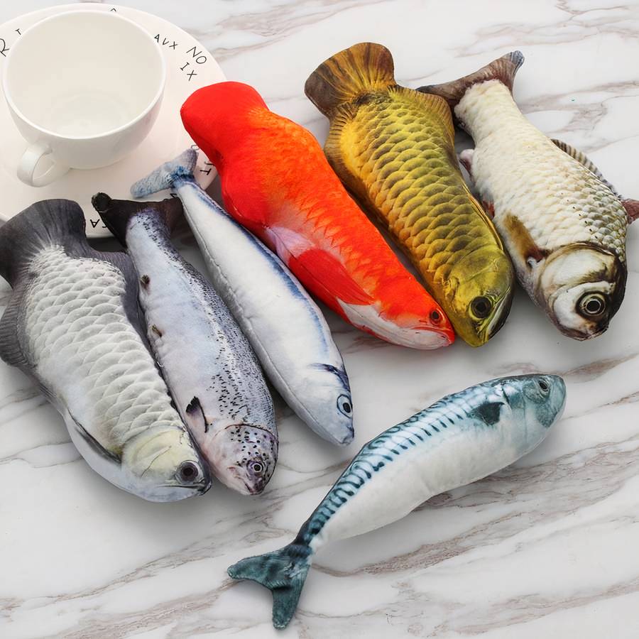 Bien différents et qui changent des traditionelles boules voici des poissons en peluche, pour que vos chats jouent avec. Ils faut bien que vos gentils félins s’amusent un peu, alors offrez leurs ces peluches. Prenez en plusieurs pour varier les plaisirs.