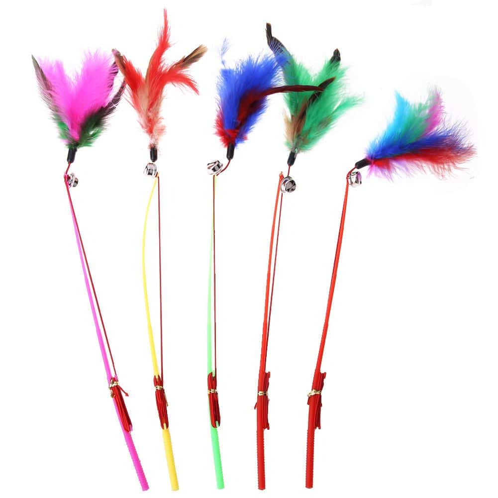 Jouez avec votre chat en lui agitant les baguettes à plumes sous le nez. Faites le sauter pour les attraper. Le lot comprend 5 baguettes, comme ça vous pouvez en donner aussi à d’autres personnes pour jouer avec les chats.