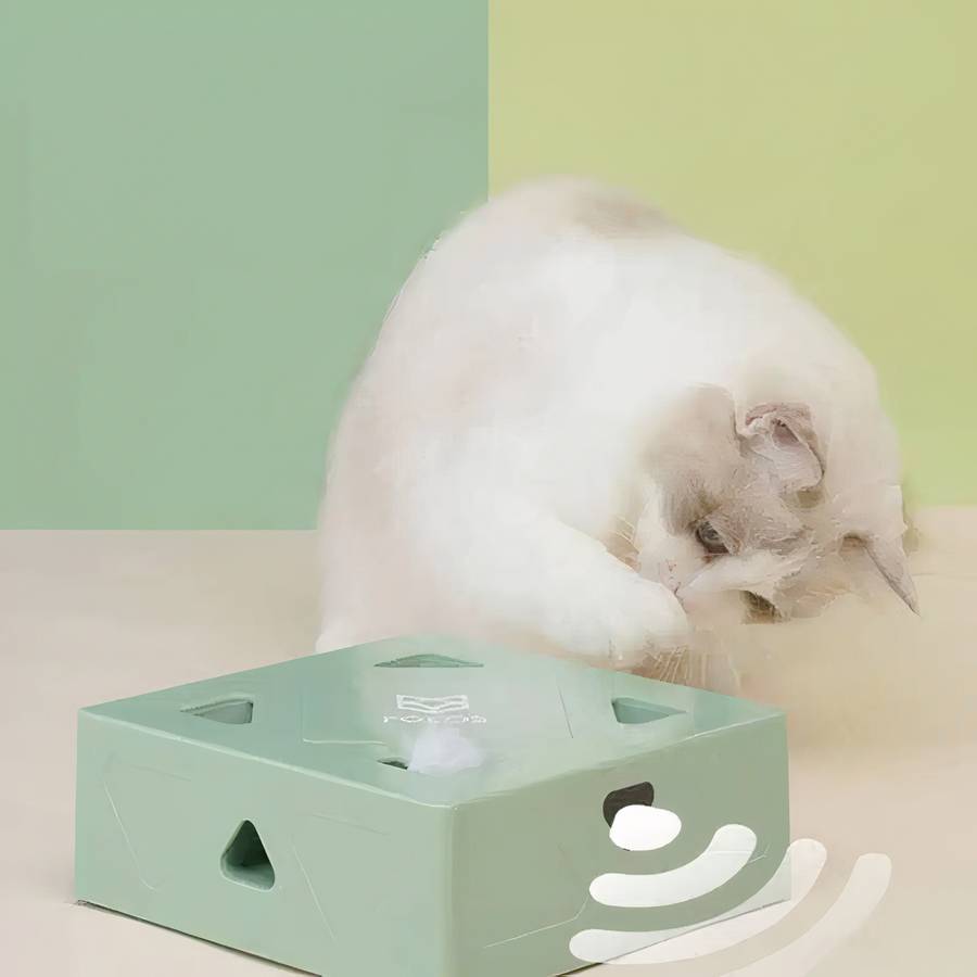 Ce jouet interactif boîte magique pour chat peut se jouer à deux ou tout seul. Lorsque vous êtes occupé à faire quelques choses, vous pouvez le laisser simplement sur le sol pour que votre petit félin puisse y jouer.