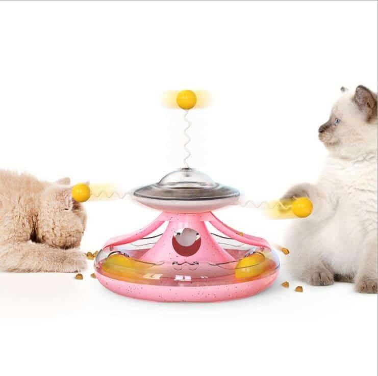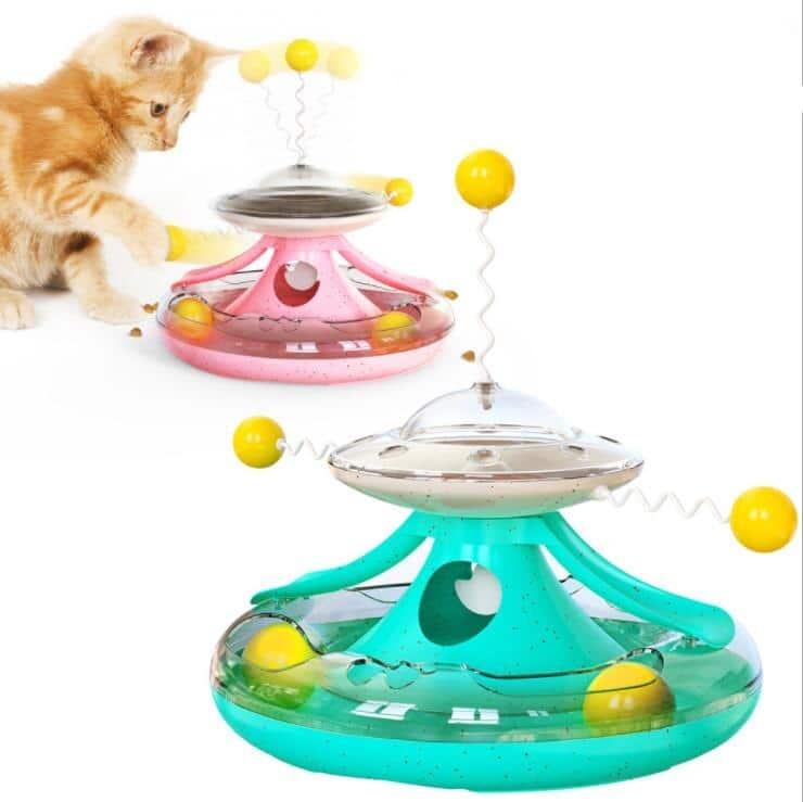 Vous ne serez pas obligé d’intervenir pour aider votre petit félin à jouer à ce jouet platine de boule rotatif pour chat. Il pourra s’occuper et s’amuser tout seul avec.