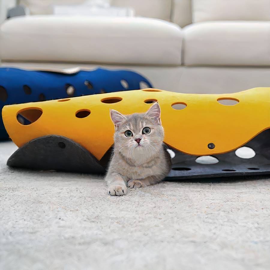 Ce jouet tunnel de chat avec plusieurs trous s’installe facilement. Peu encombrant, il pourra se glisser facilement dans votre salon ou votre chambre à coucher.