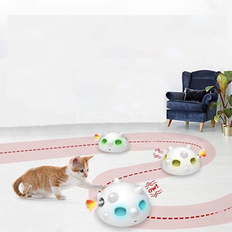 Ce robot jouet bâton de plumes pour chat , ressemble vraiment à une soucoupe de l’ espace pour votre chat. Il est inter actif et se met en marche lorsque le chat le touche. Fonctionne sur batterie rechargeable avec USB, et 3 modes de fonctionnement sont possibles.