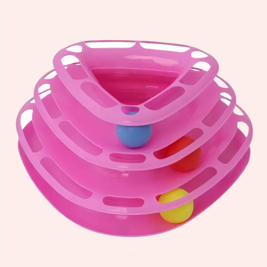 Votre chat aura du mal à comprendre pourquoi les boules tournent tout autour, mais ne sortent jamais des goutières. Un triple disque de jeu avec balles pour chat sans fin pour que vous soyez tranquille pendant ce temps là . Facile et pratique à emporter partout.