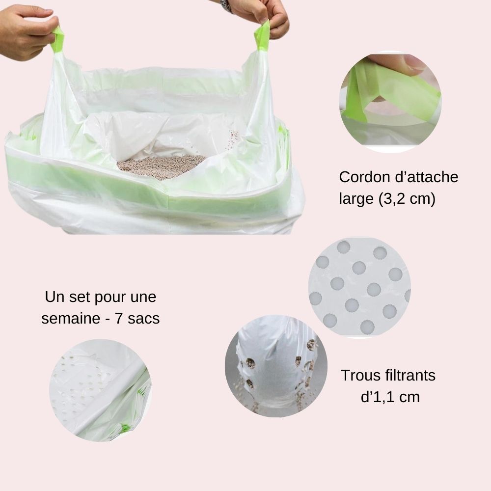 Parfaits pour les déplacements, les 7 sacs litière filtrants de voyage pour chat, en plastique épais sont résistants aux rayures et aux déchirures. Pratiques, ils permettent d’économiser jusqu’à 30% de litière.