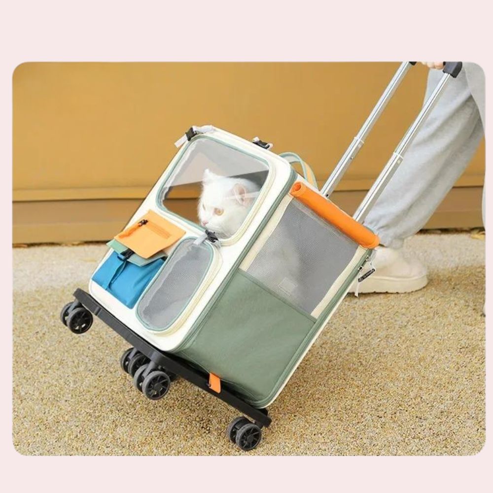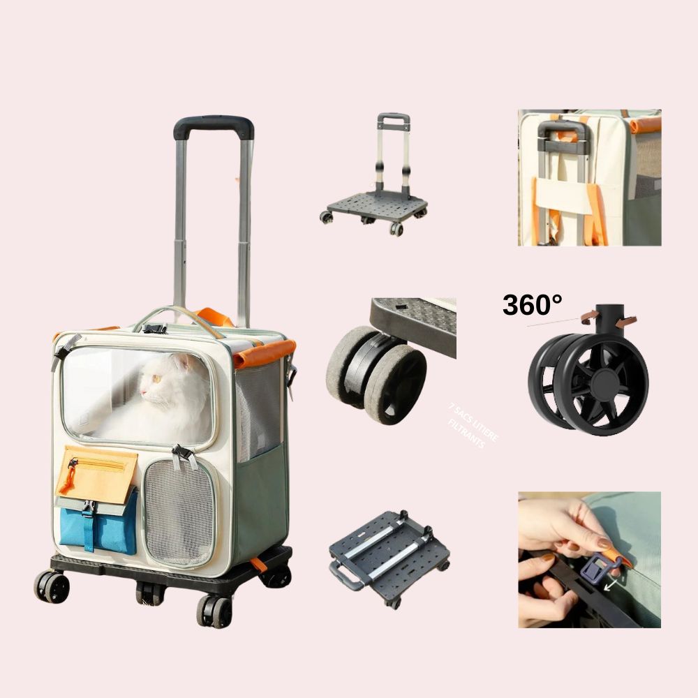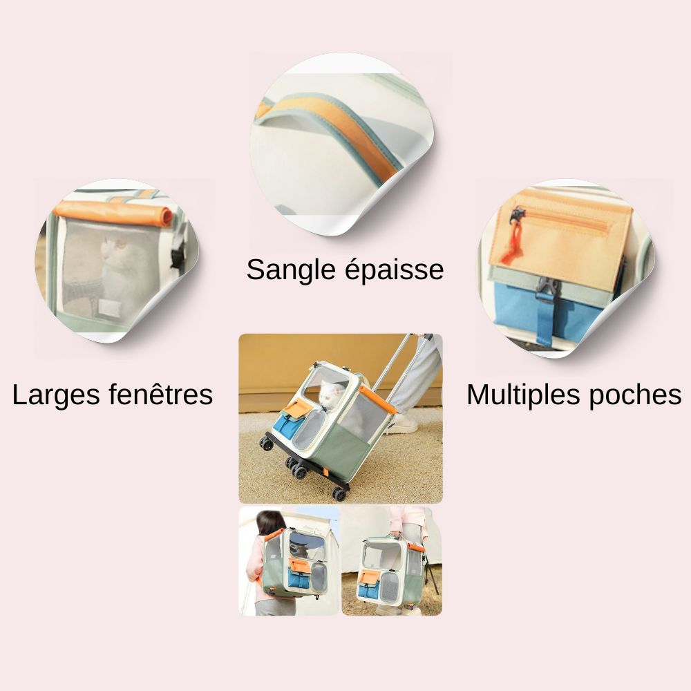 Robuste et durable, cette caisse de transport pour chat 4 en , en tissu Oxford supporte jusqu’à 9 kg. Confortable, elle dispose de bretelles rembourrées, d’un intérieur en polaire amovible et de fenêtres en maille pour une bonne ventilation. Pratique, elle s’installe aisément sur un chariot à roulettes, silencieux et qui se plie facilement.