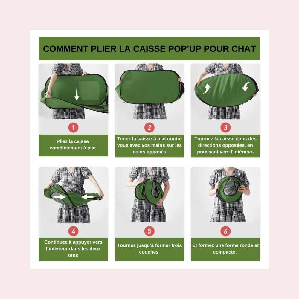 Grâce à son design pliable, vous pouvez monter et démonter la caisse de transport pop’up pour chat en quelques secondes seulement, ce qui facilite grandement le rangement et le transport. Lorsque vous voyagez, cette caractéristique permet d’emporter un espace de repos confortable pour votre chat sans encombrer votre véhicule.
