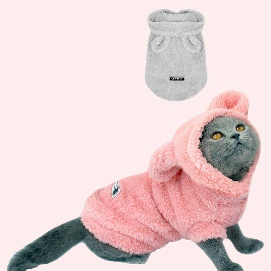 Cette jolie veste chat en peluche avec oreille de lapin est confectionnée en tissu polaire doux. Elle saura offrir chaleur et douceur à votre petit compagnon.